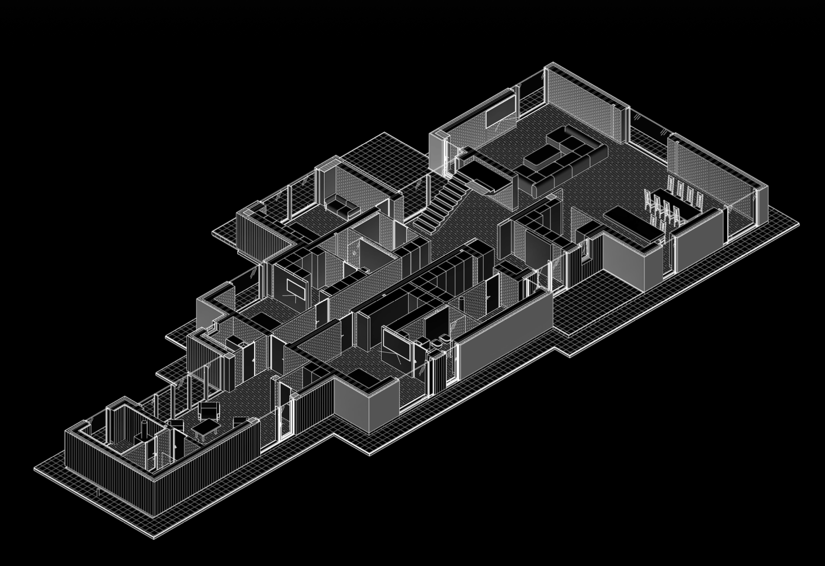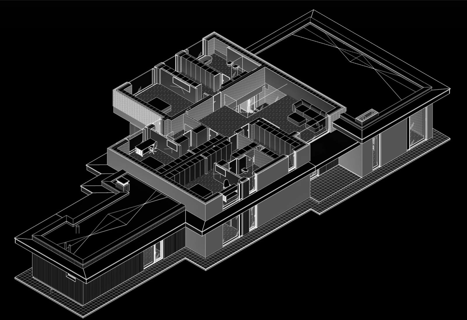 Современный двухэтажный загородный дом в стиле минимализм с тёмными фасадами из дерева гармонично вписан в сосновый лес, сохраняя приватность и максимум естественного света. Горизонтальная композиция с широкими выносами кровли, террасой и встроенным гаражом формирует комфортную планировку.